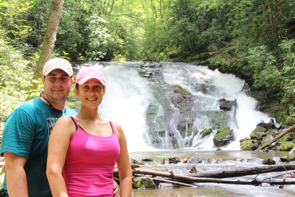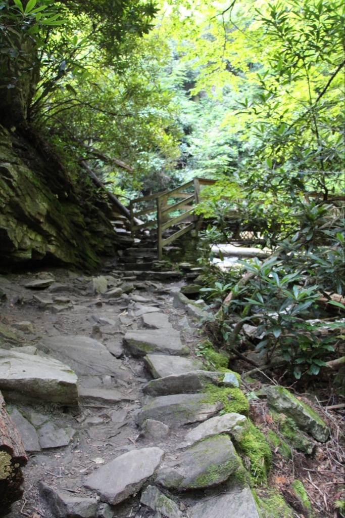 Now back to the hike. We started our day early to beat to crowds. First stop was right up road from the campground to Mingo Falls. It was a short walk from the parking area to the falls up a lot of stairs, a great glut workout!