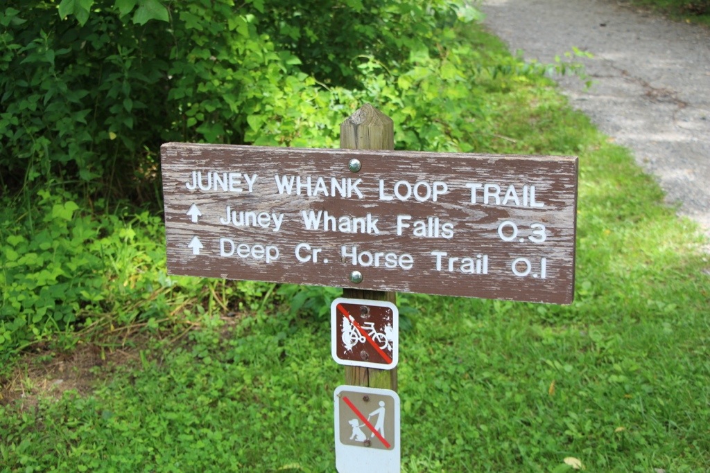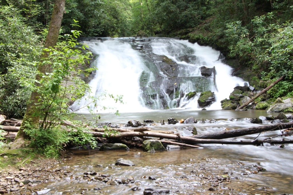 Coming down the stairs, Roux just wasn’t cooperating so we went back to the camper to leave him there. Then it was off to Bryson City, NC for some more hiking and viewing 3 more falls.