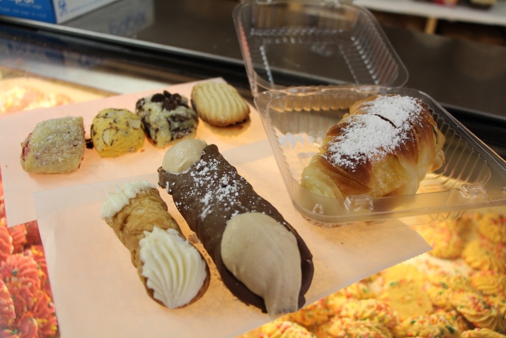 After we headed to Bova’s Italian Bakery. We were both in awe at all of the goodies they had in the shop. Aimee had trouble deciding which treat to get, so we purchased a little bit of everything. We tried a Peanut Butter Cannoli, an Italian Cannoli, a Creme Lobster Tail, four italian cookies. Everything was delicious!
