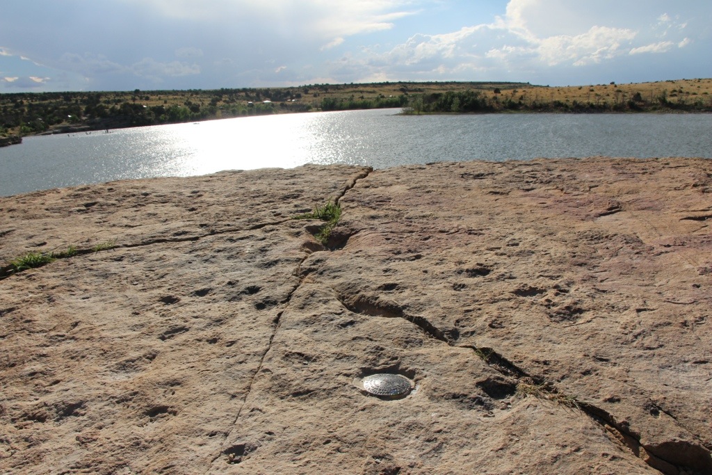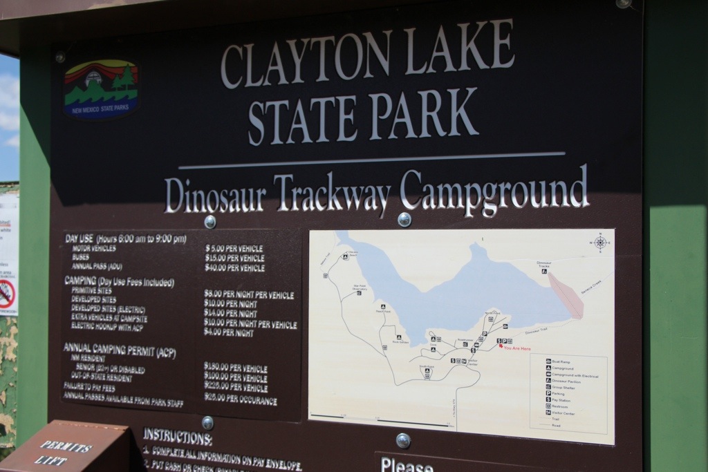 Clayton Lake State Park is a state park of New Mexico, United States, featuring a 170-acre (69 ha) recreational reservoir and a fossil trackway of dinosaur footprints. It is located 15 miles (24 km) north of Clayton, close to New Mexico’s border with Colorado, Oklahoma, and Texas. The landscape is characterized by rolling grasslands, volcanic rocks, and sandstone bluffs, set on the western edge of the Great Plains. The park area was a stopover point for travelers along the Cimarron Cutoff of the Santa Fe Trail. (Wikipedia)