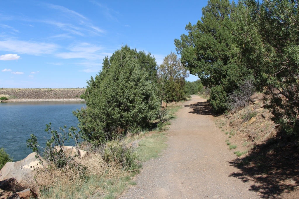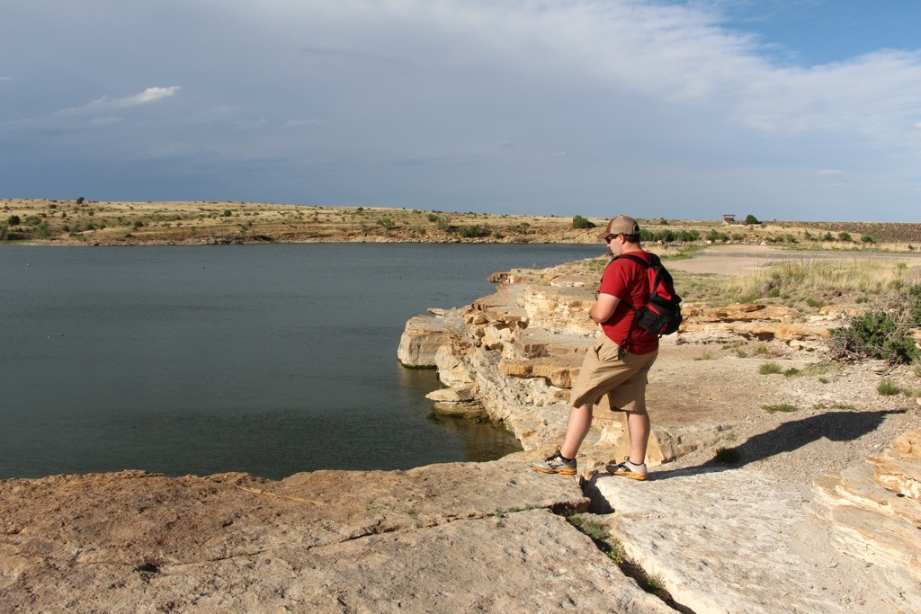 Our site had a terrific view of the lake. The lake is surrounded by rock cliffs and has a rocky bottom. There were a few people fishing, they said they had caught several trout. Unfortunately for Jacob you need a New Mexico fishing license.