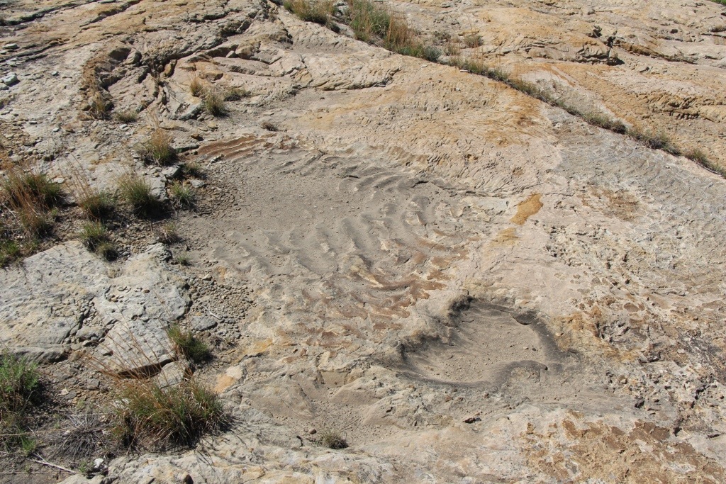 After settling in, we headed off on a hike to see dinosaur tracks which are located on the opposite side of the lake from the camp sites. There are tracks from a variety of dinosaurs, tail marks, and fossilized mud cracks and tidal ripples. We saw beautiful plants, rabbits, deer, and tumble weeds.