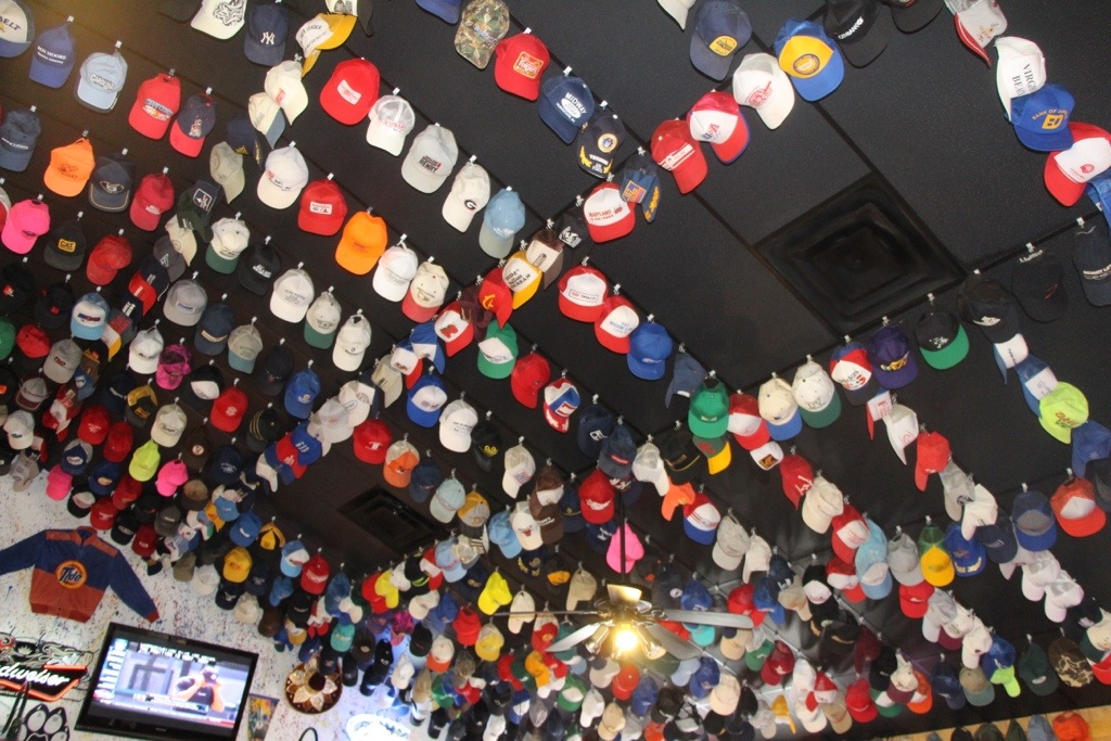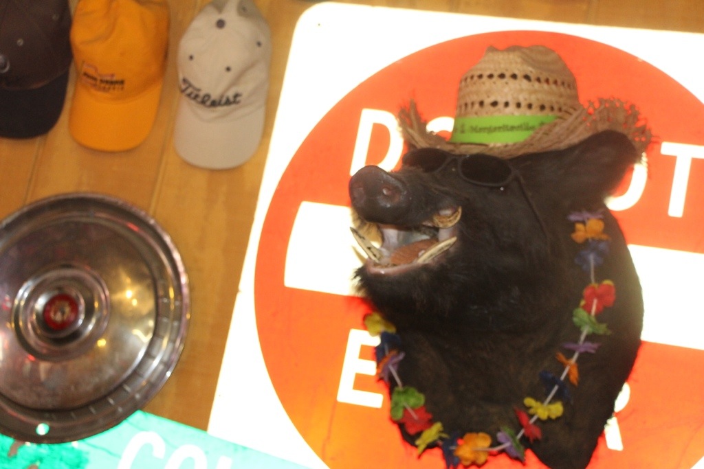Inside the restaurant, the atmosphere was upbeat and modern. There were cool hats, pictures, license plates, and this cool hog mounted on the wall..looks like Pumpba from the lion king!